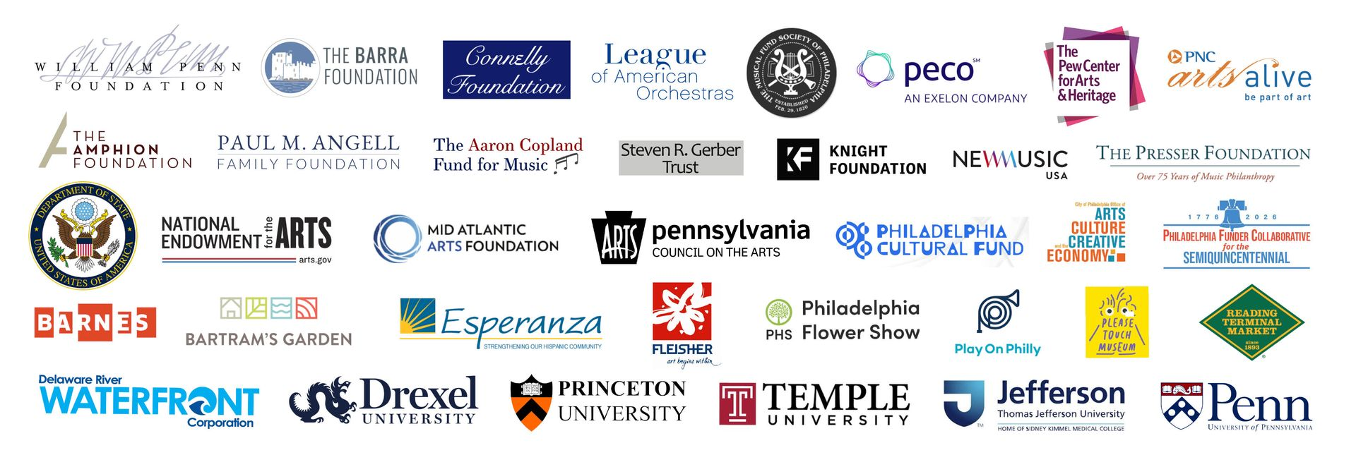 Orchestra 2001 is grateful to its Foundation, Government, and Organizational Contributors and Partners:
